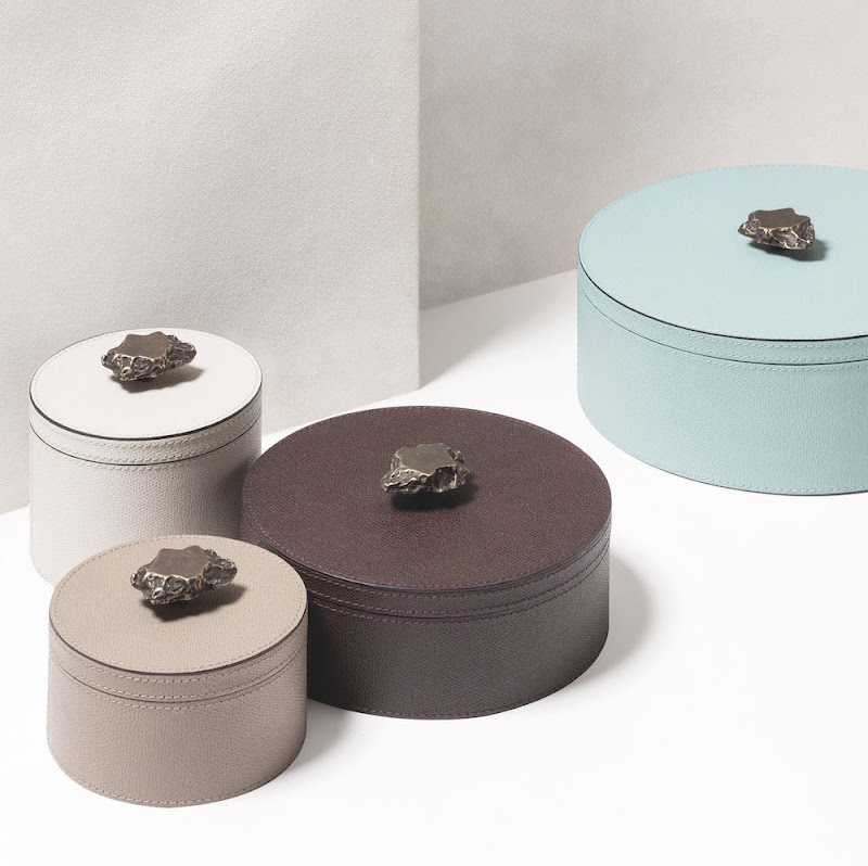 Body en deksel kunnen met onderling verschillende leer afwerkingen worden bekleed.