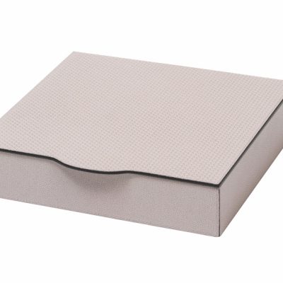 De doos is leverbaar in meerdere maten in vierkant en rechthoekig.