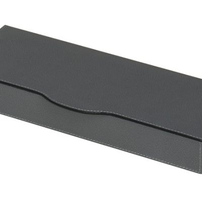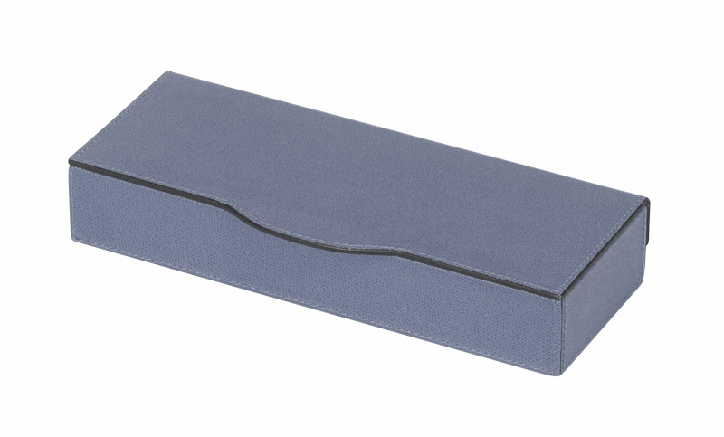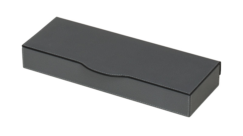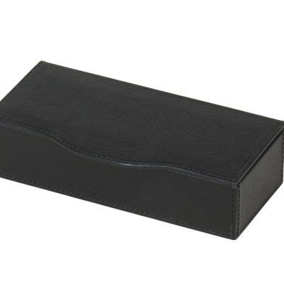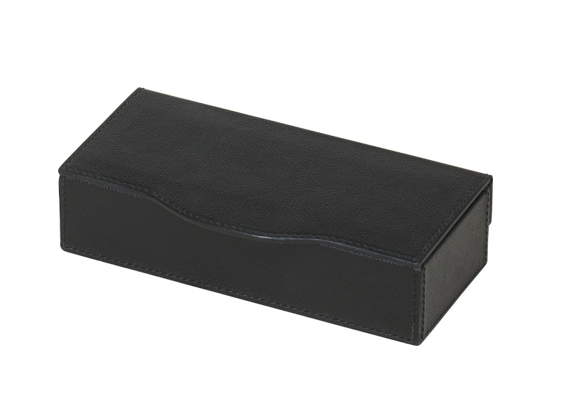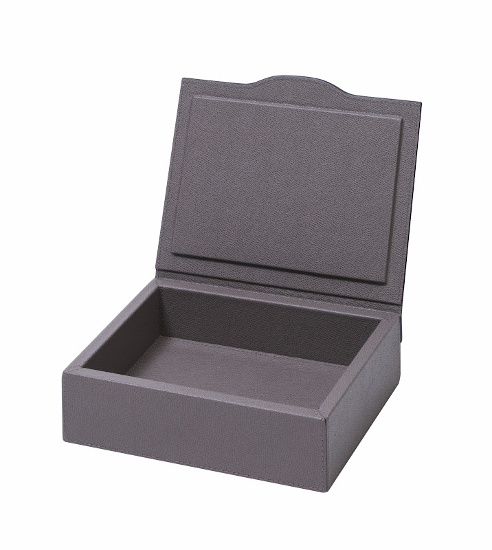 Met leer beklede houten opbergdoos met scharnierend deksel.