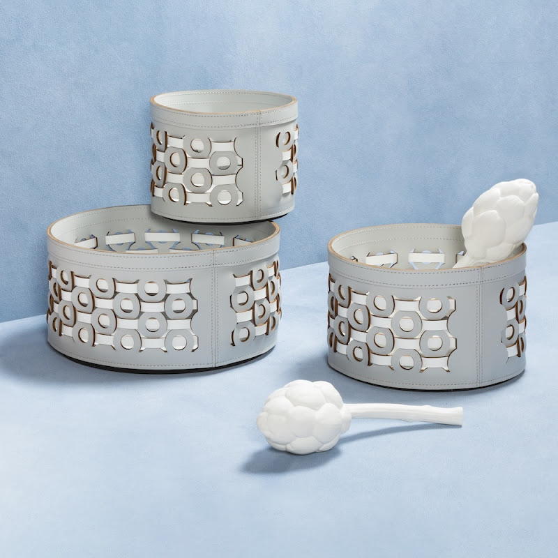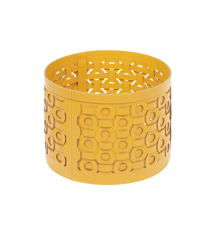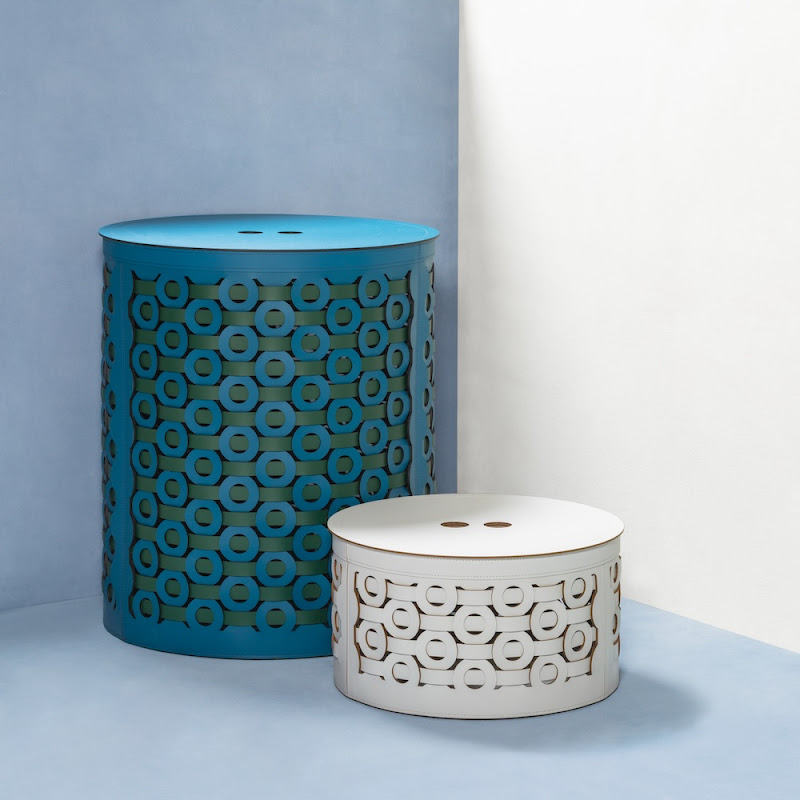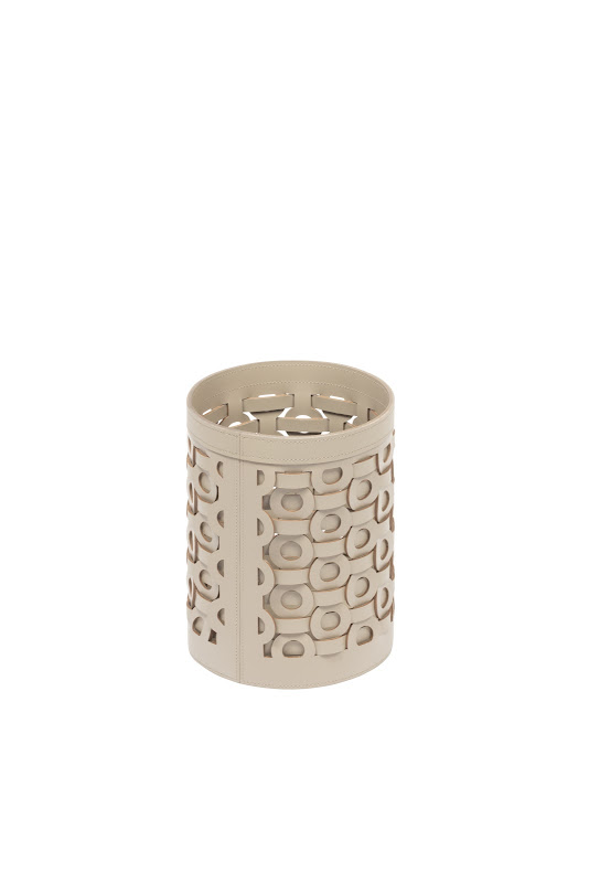 Volledig handgemaakte Tecnocuoio® leren mand met vlechtwerk.