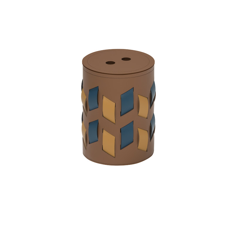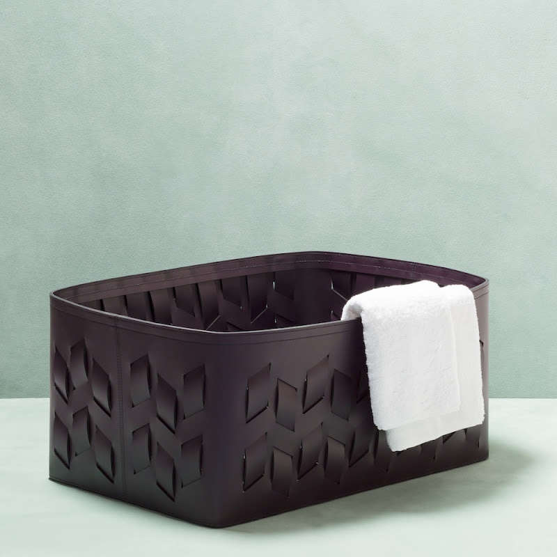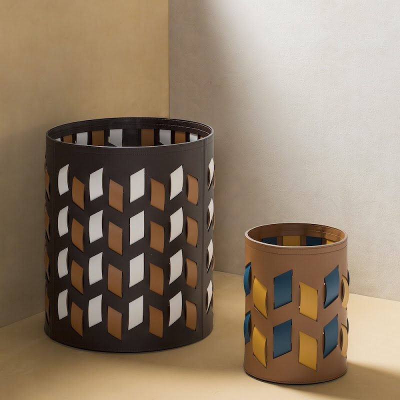 Volledig handgemaakte Tecnocuoio® leren mand met vlechtwerk.