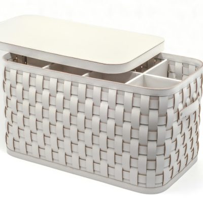 Kan worden gebruikt als tijdschriftenhouder, mand voor houtblokken, schoenen- of handdoeken mand voor jachten, spa's of persoonlijk gebruik.