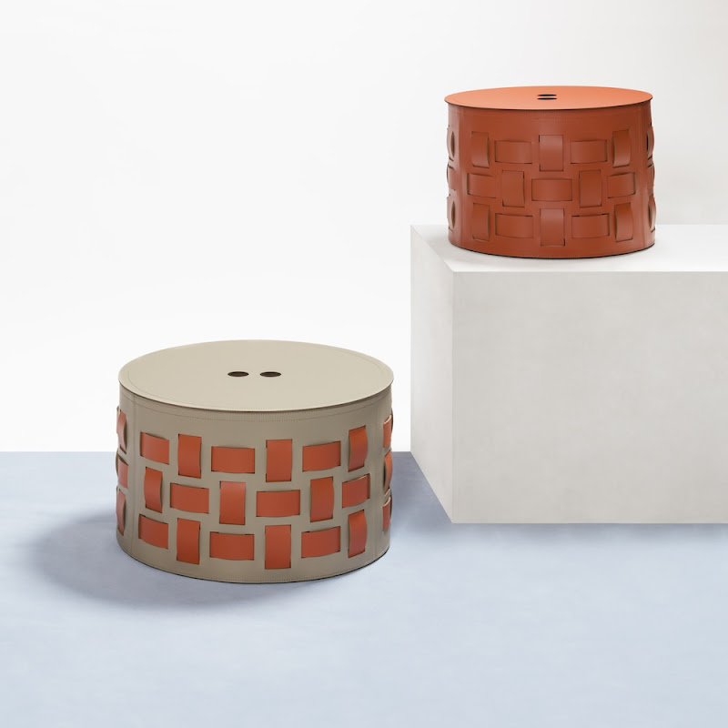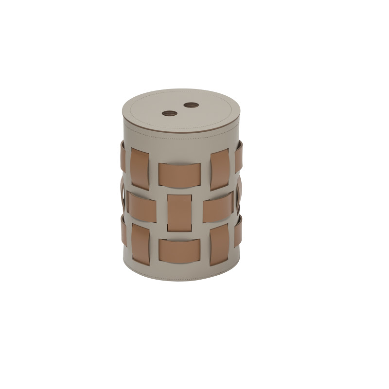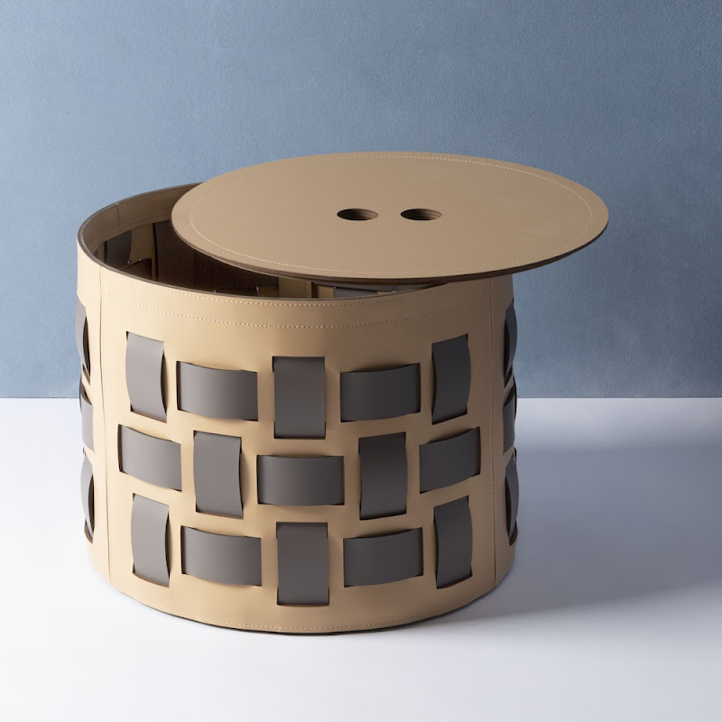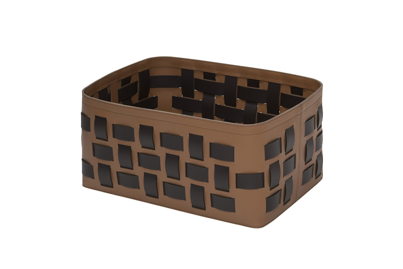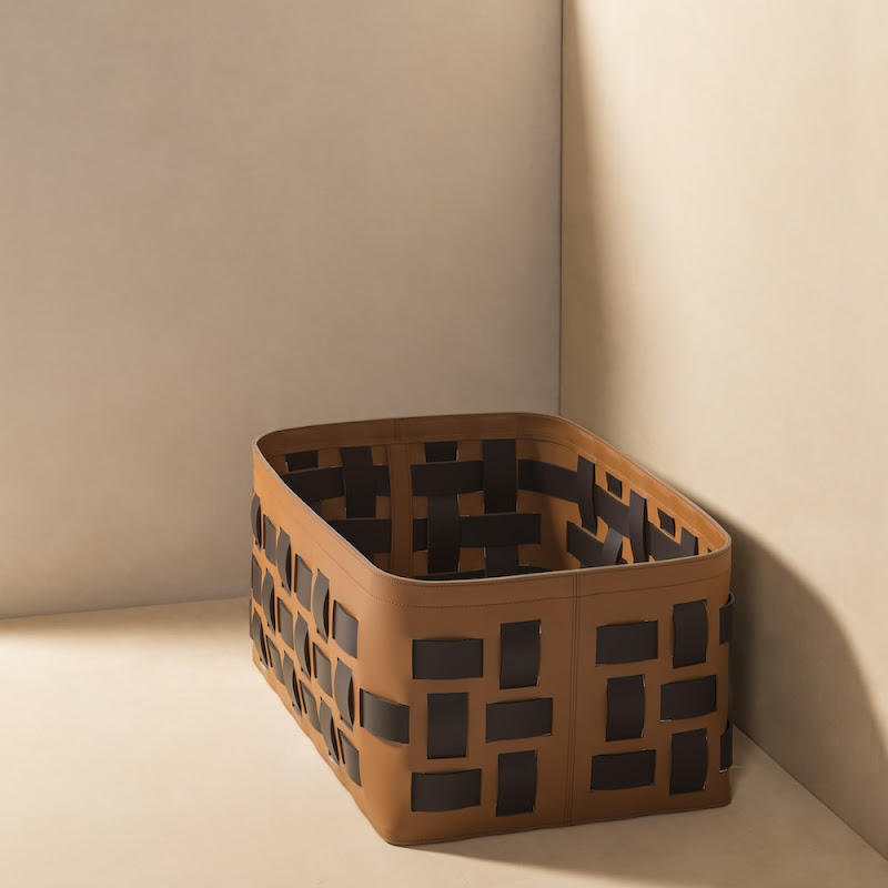 Volledig handgemaakte Tecnocuoio® leren mand met vlechtwerk.
