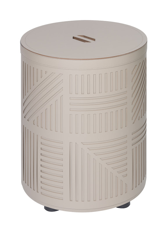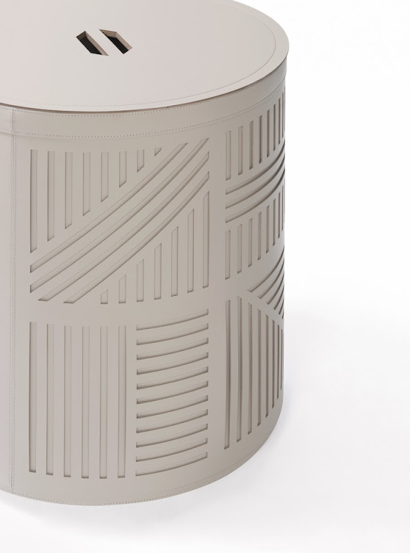 Volledig handgemaakte Tecnocuoio® leren ronde mand.