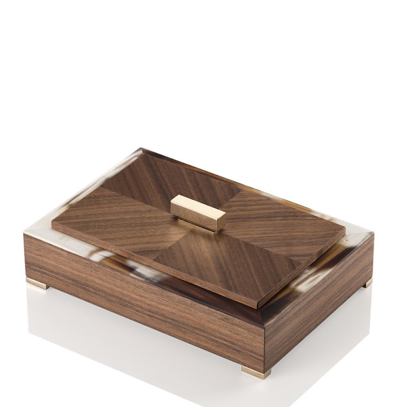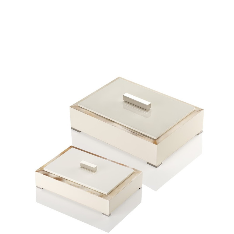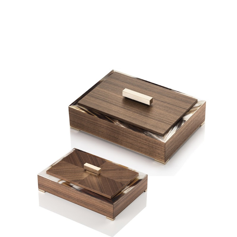 Rechthoekige dozen in glanzend zwart gelakt hout en donker hoorn.