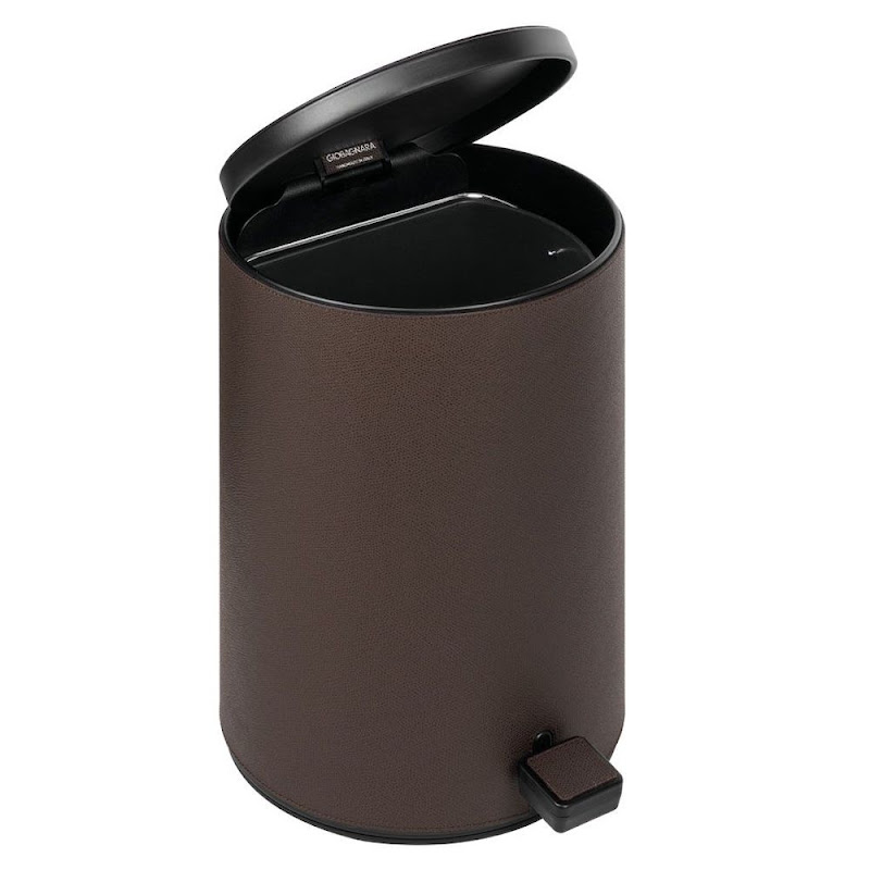| Pedaalemmer “Jazz”, met leer beklede stalen bak. Heeft een anti-sllip, waterbestendige rubber bodem. De binnenbak heeft een handvat, is van kunsstof en uitneembaar voor schoonmaken