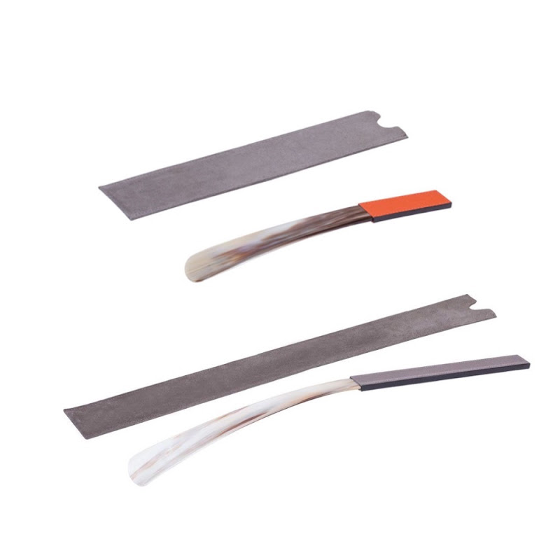 hoornen lepel met leren greep in 2 maten