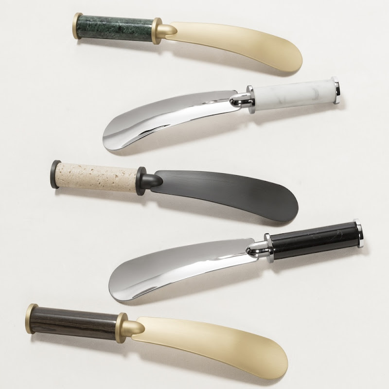 metalen lepel in 2 kleuren met marmeren greep in 5 soorten natuursteen