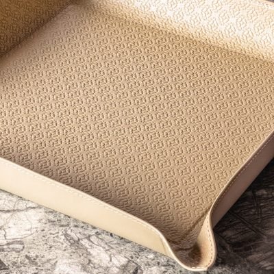 Verkrijgbaar in 3 vierkante maten en 1 rechthoekige en in 5 kleuren ELIE SAAB premium kalfsleer.