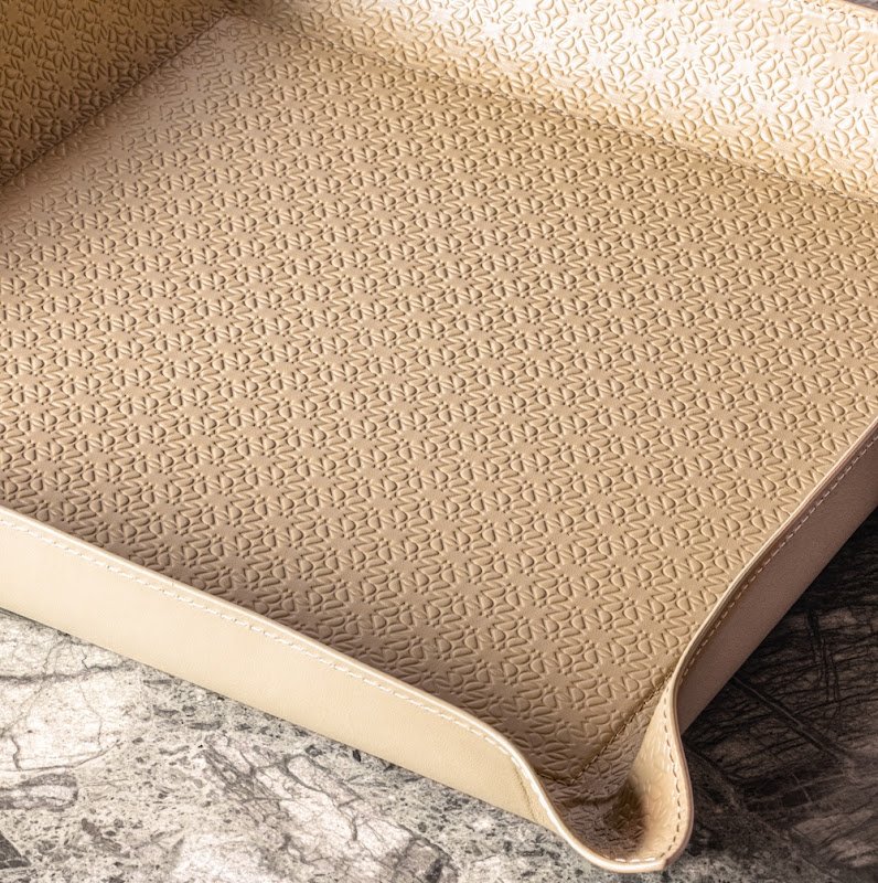 Verkrijgbaar in 3 vierkante maten en 1 rechthoekige en in 5 kleuren ELIE SAAB premium kalfsleer.