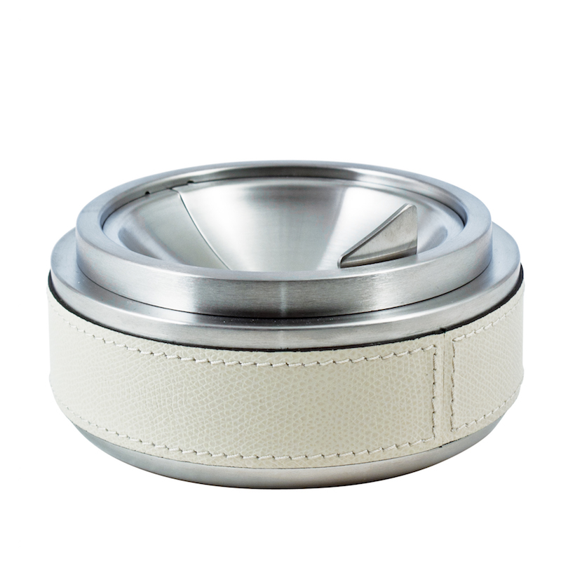 Deels bekleed met leer, gesatineerd roestvrijstalen asbak.