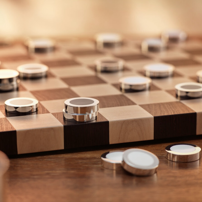 Dambord uitgevoerd in Esdoorn- en Wengé hout