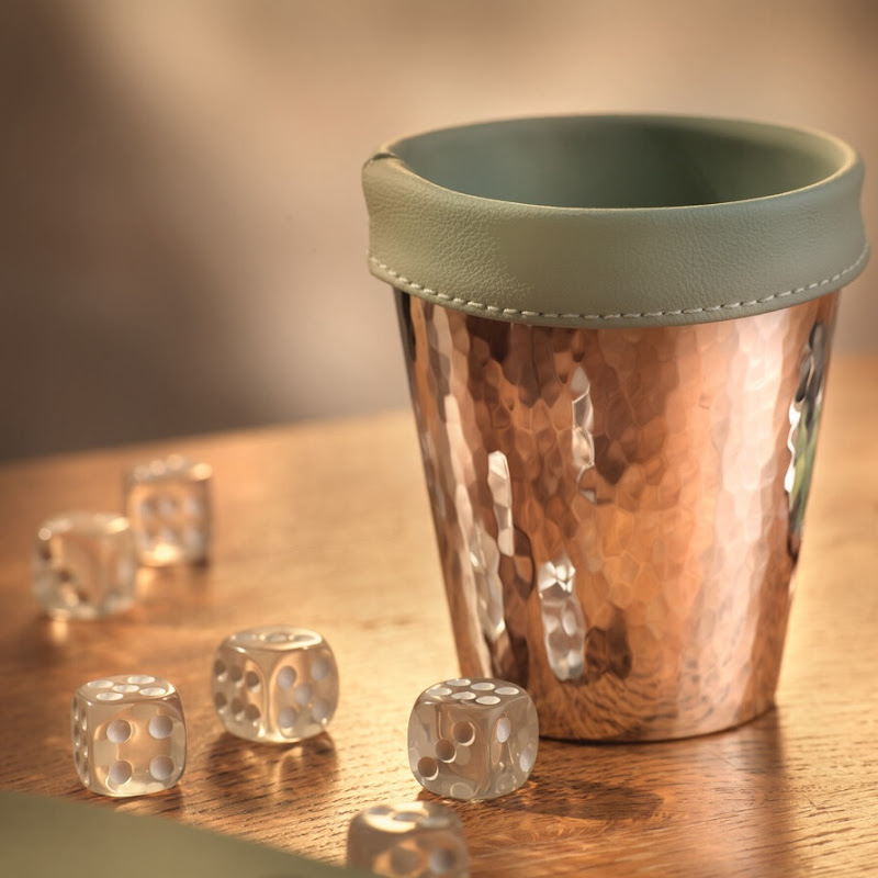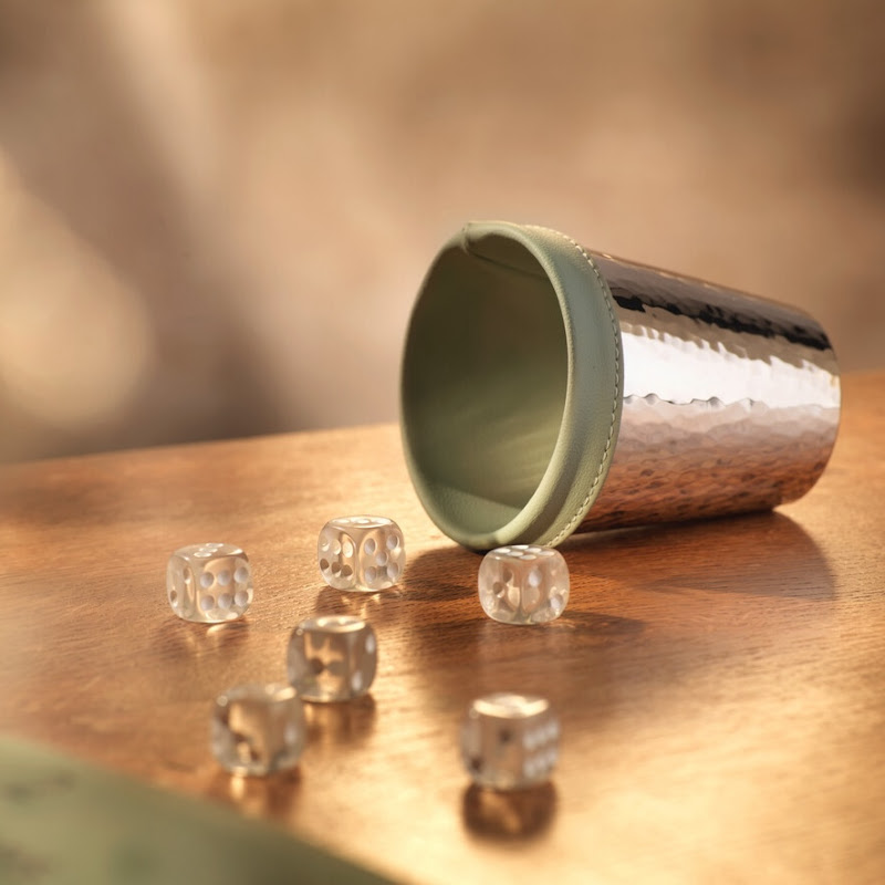 Dobbelsteenbeker verzilverd, inclusief 6 dobbelstenen