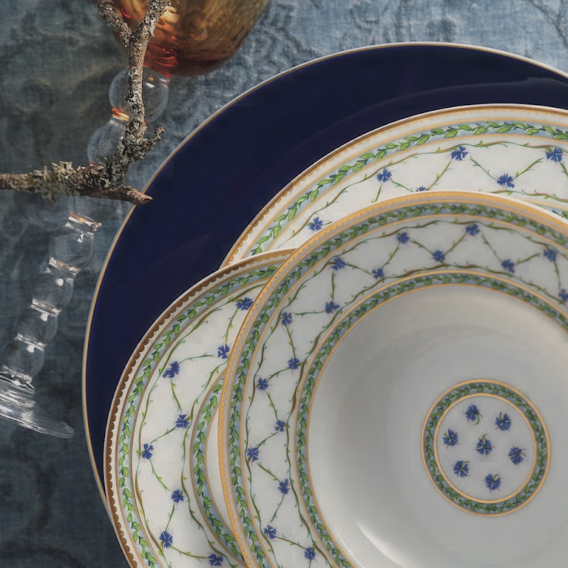 Allée du Roy is een traditioneel uitgebreid servies van Raynaud. Wij laten u hier slechts een beperkte selectie van de belangrijkste onderdelen zien. Voor informatie en afbeeldingen van de overige serviesdelen verzoeken wij u contact met ons op te nemen.