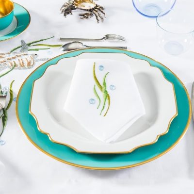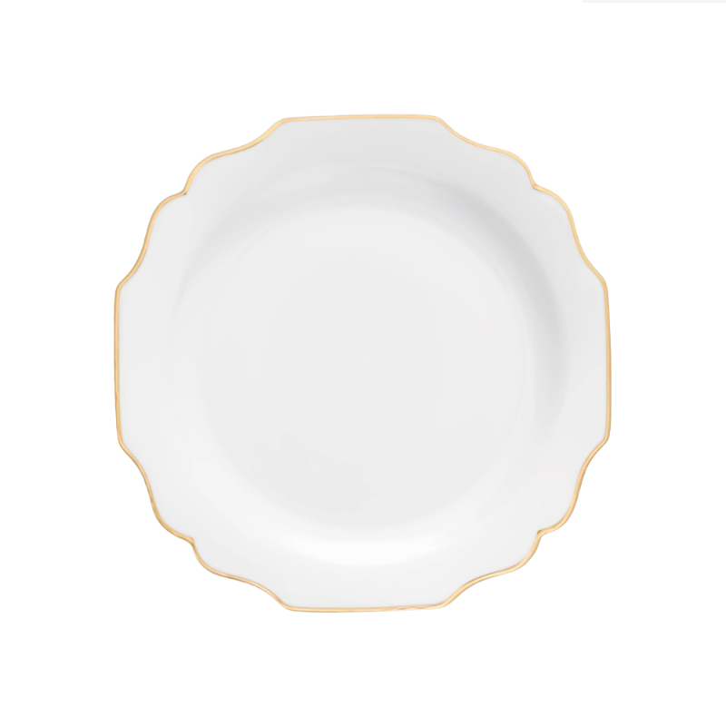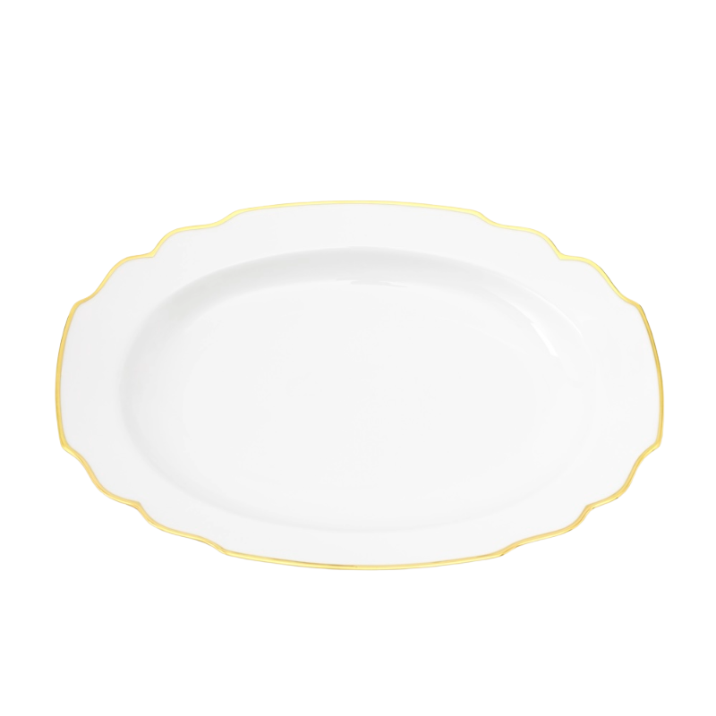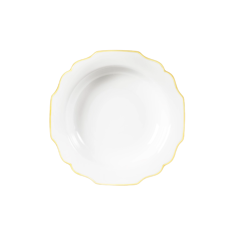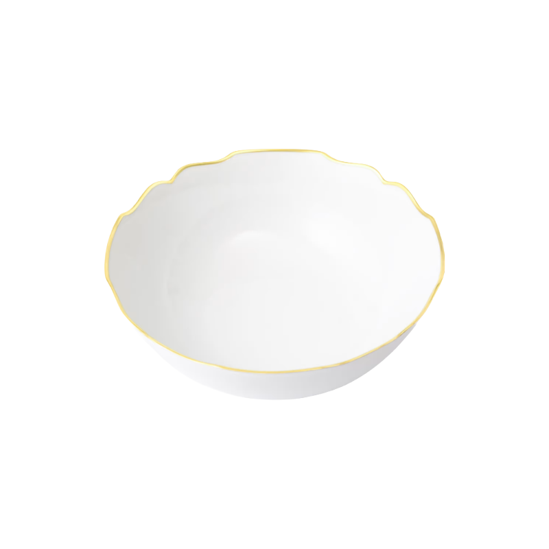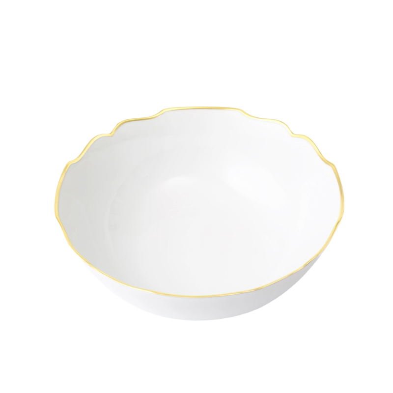 De elegante gouden rand benadrukt de unieke vorm en kan een stijlvol gecombineerd worden met diverse serviezen.