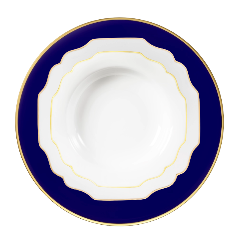 De elegante gouden rand benadrukt de unieke vorm en kan een stijlvol gecombineerd worden met diverse serviezen.