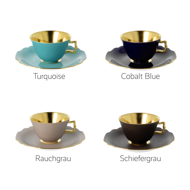 Het theeservies is eveneens verkrijgbaar in 9 prachtige kleuren.