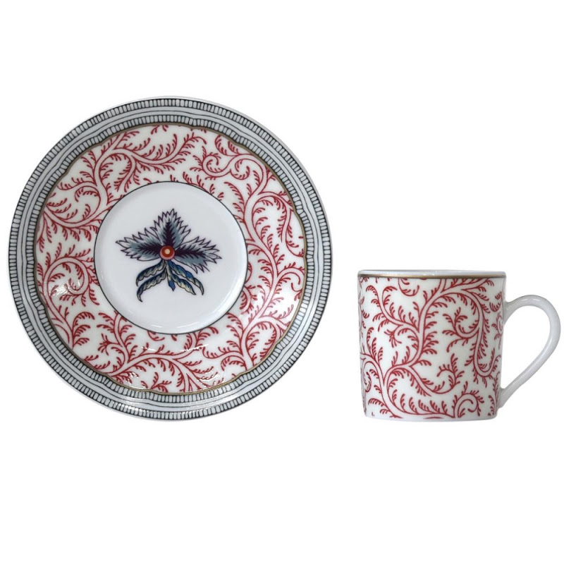 De Braquenié collectie is het resultaat van een unieke samenwerking, het verhaal van een ontmoeting tussen textiel en porselein, tussen materialen en kleuren, tussen 2 Franse merken, Pierre Frey en Bernardaud. De twee prachtige stoffen, "Grand Corail" en "La Ménagerie", vormen de basis voor dit servies.