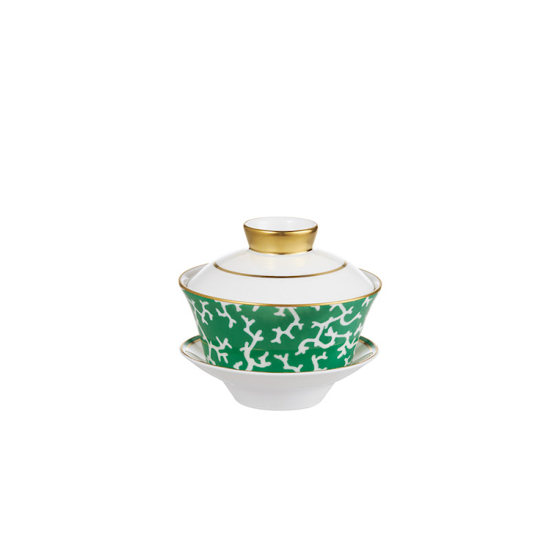 Chinese theekop en schotel met deksel