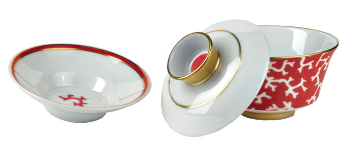 Chinese theekop en schotel met deksel