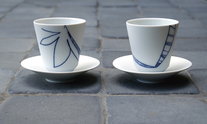 Bisquit porselein, gepolijst met kobaltblauw decor
