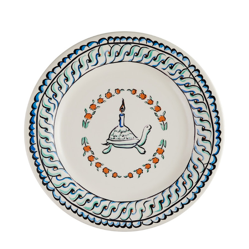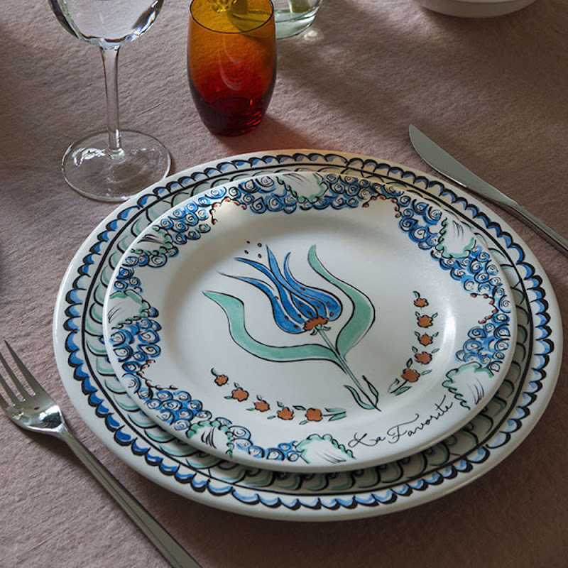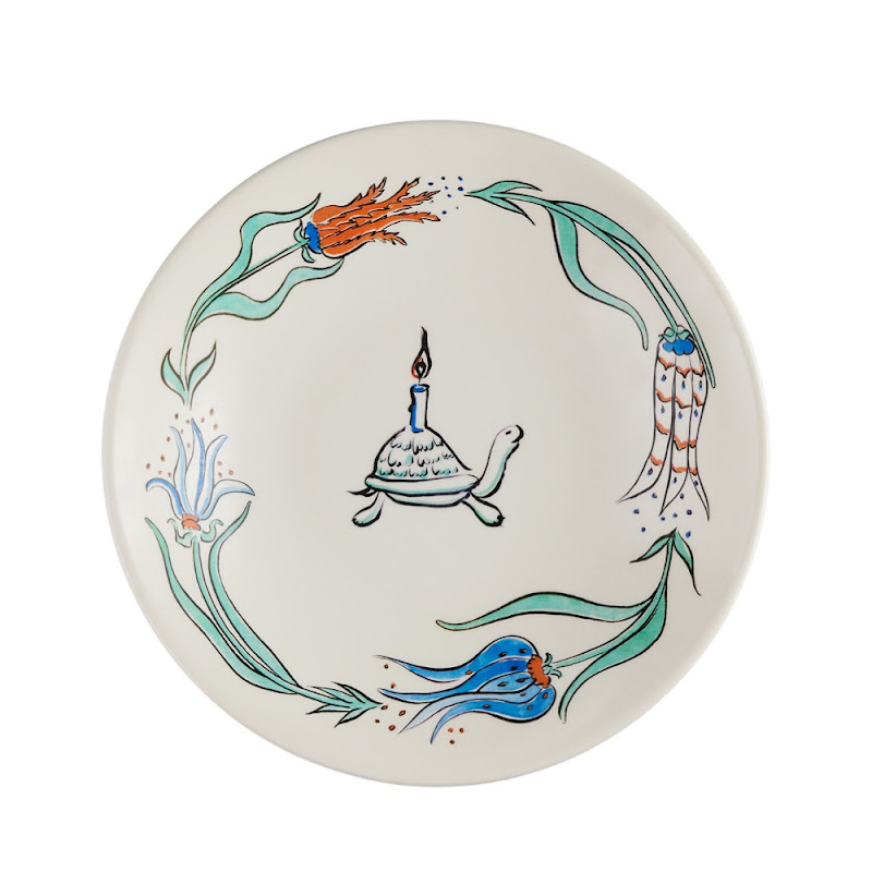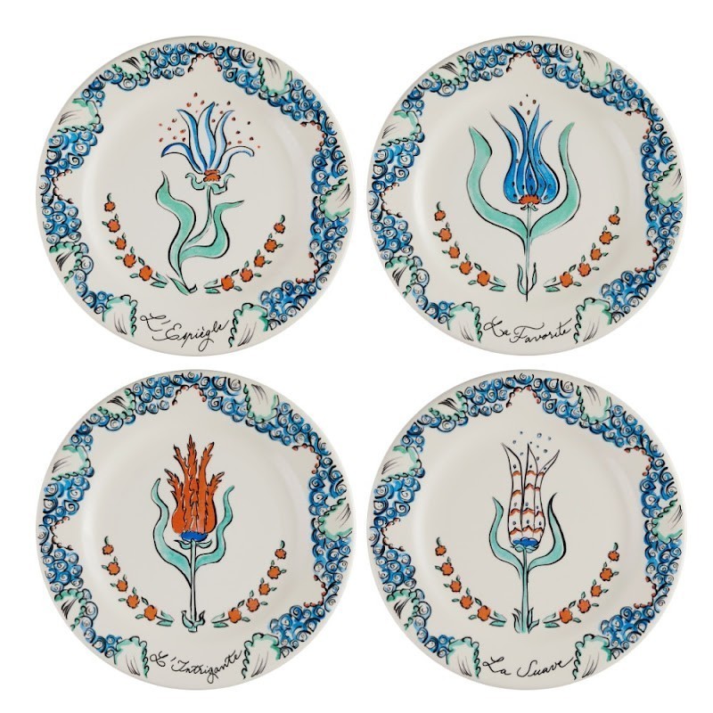 De onderdelen van dit servies vormen de bloementuinen van de Sultan, waar de schidpad doorheen wandelt en ze verlicht. Er zijn 4 bloemen afgebeeld op de dessertborden, ieder met een eigen naam: ondeugend, kunstzinnig, lieflijk en Favoriet. De schildpad wordt verliefd op de laatste en op de gebakschaal is te zien dat hij, ondanks dat de andere 3 bloemen hem proberen te verleiden, hij alleen maar oog heeft voor De Favoriet!