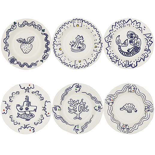 | Diep bord, set van 6, 6 decors