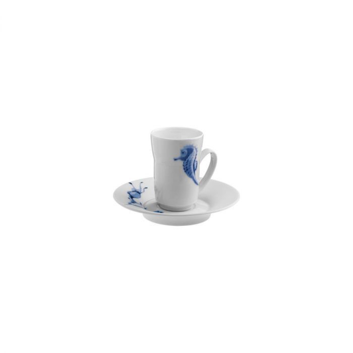 | Koffiekop en schotel cylindrisch Zeepaardje en zeewier