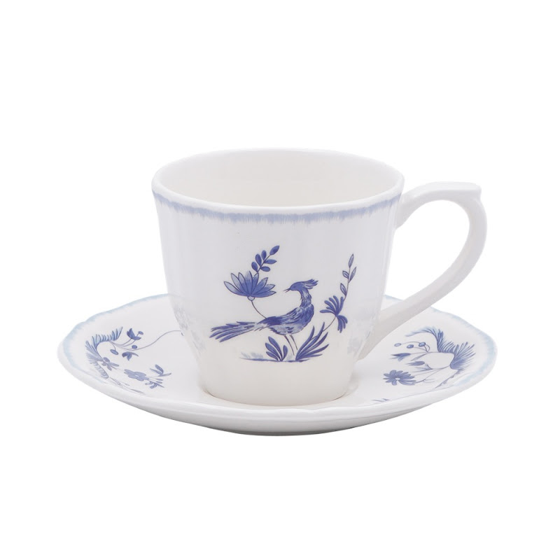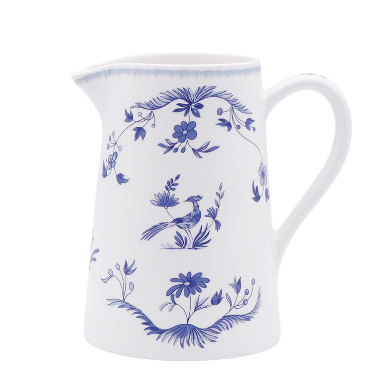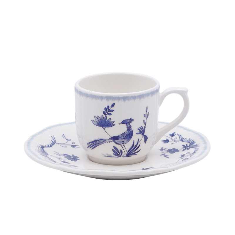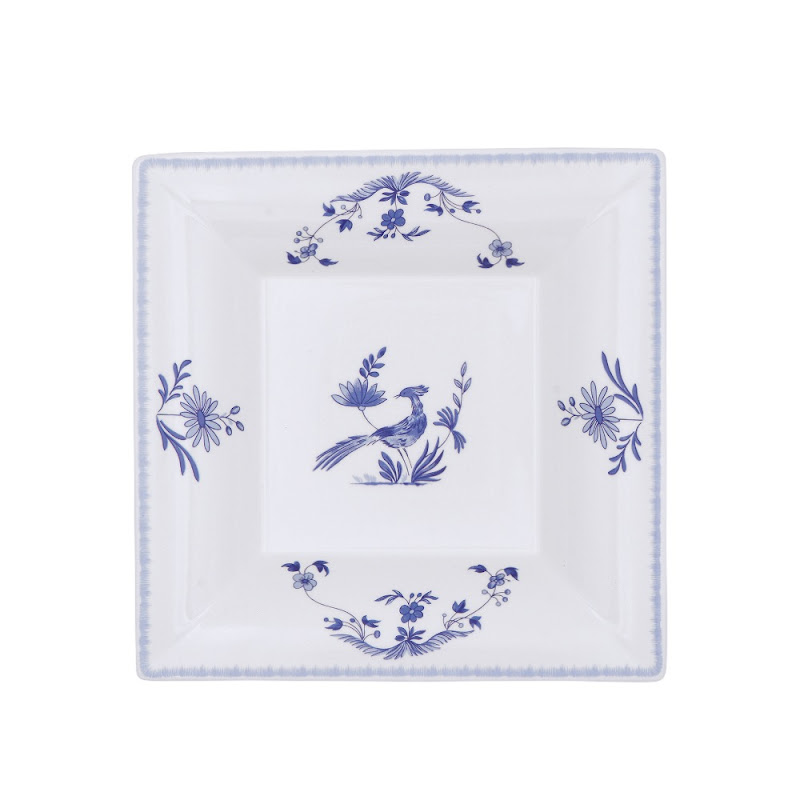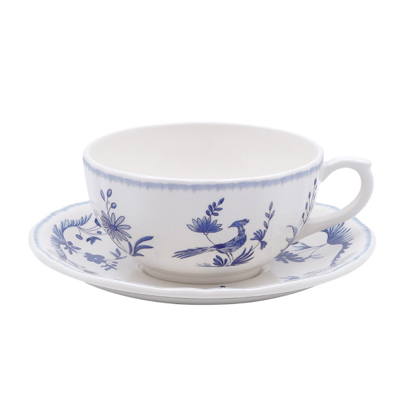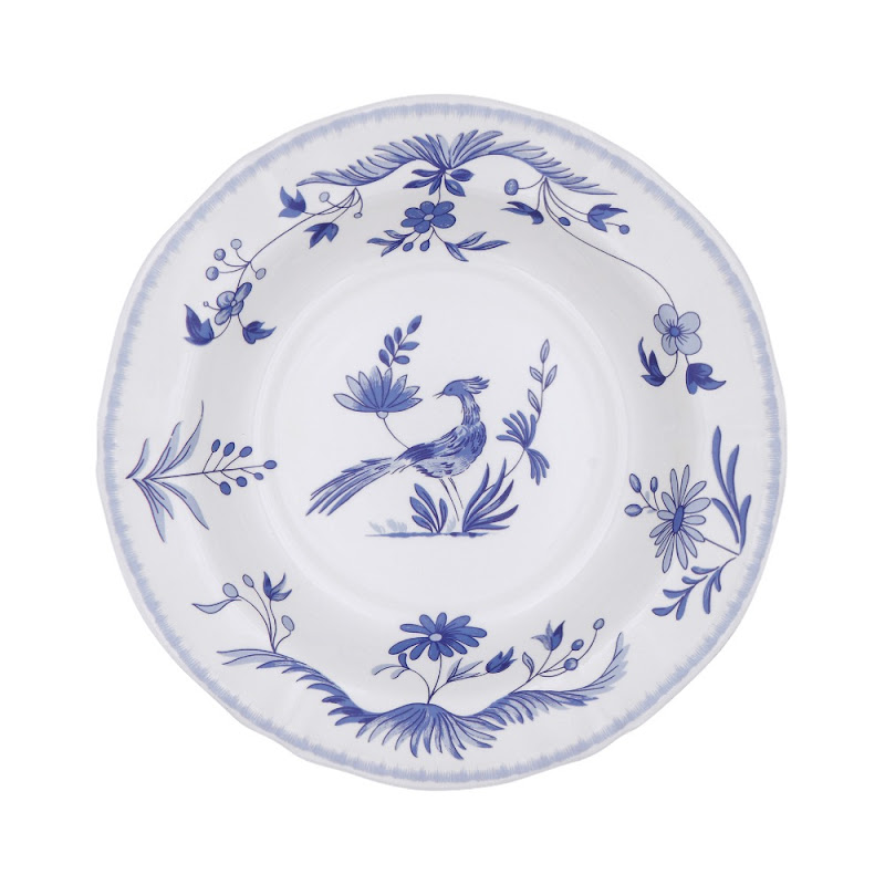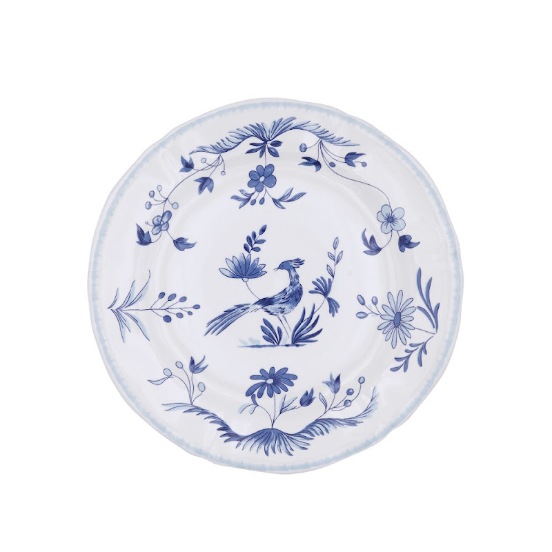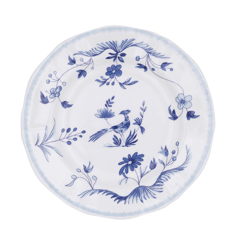 Deze collectie is geïnspireerd op het iconische Oiseaux de Paradis en opnieuw geïnterpreteerd in monochroom blauw, de kenmerkende kleur van Gien. Drie tinten blauw vormen samen een harmonieus en stralend geheel. Paradis Bleu is ontworpen met een geschulpte vorm en arcerende lijnen, wat zorgt voor een eigentijdse interpretatie van dit iconische motief.