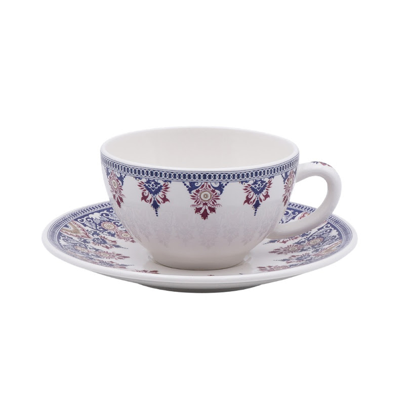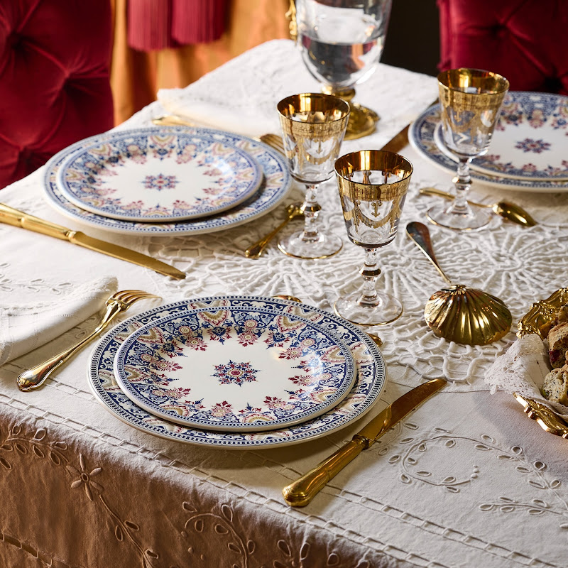 Rouen Or is geïnspireerd op de historische archieven van Faïencerie de Gien. De combinatie van diep blauw en intens bordeauxrood creëert een krachtige, elegante uitstraling, , terwijl de verfijnde inleg van puur goud zorgt voor een schitterende, luxueuze afwerking.