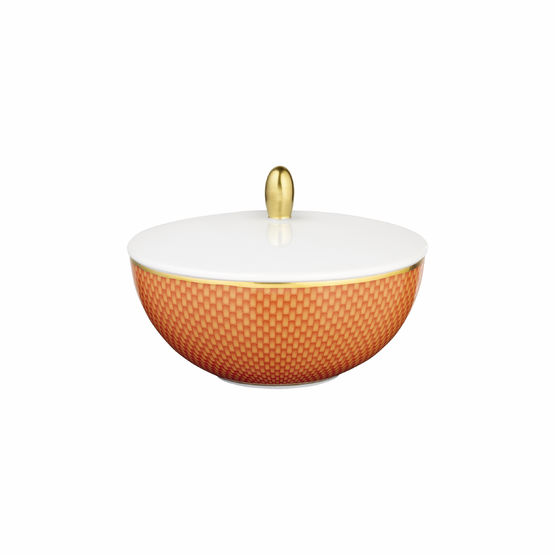 | Soepterrine/Dekschaal, honingraat patroon Oranje