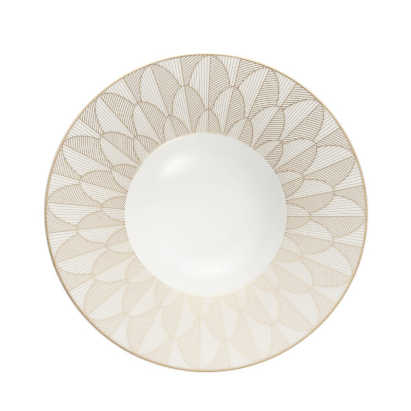 Het decor is geinspireerd op het bekende Malmaison bestek maar heeft een moderne, eigentijdse uitstraling. Elk onderdeel heeft zijn eigen decoratie waardoor er verschillende sferen op tafel kunnen worden gecreëerd. Leverbaar in platina en goud.
