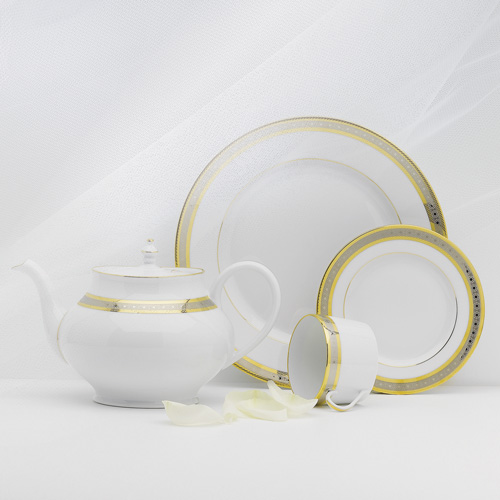 Decor ontworpen door Haviland als eerbetoon aan een van de mooiste pleinen in Parijs, Place VendIome. Het servies wordt omlijst door een elegant en verfijnd decor in goud en platina