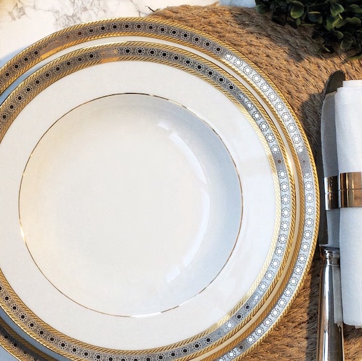 Decor ontworpen door Haviland als eerbetoon aan een van de mooiste pleinen in Parijs, Place VendIome. Het servies wordt omlijst door een elegant en verfijnd decor in goud en platina