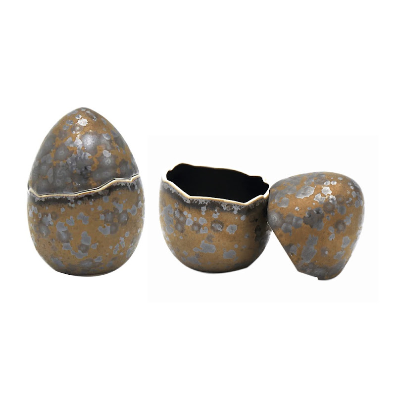 Jaune de Chrome is vermaard om het exclusieve glazuur vakmanschap. Metaaldeeltjes worden, vermengd met glazuur, nauwkeurig op het porselein aangebracht, waarna het brandingsproces in de oven de ruwe materialen transformeert. Hierdoor is ieder stuk uniek en nooit helemaal hetzelfde, maar ook niet echt anders.
