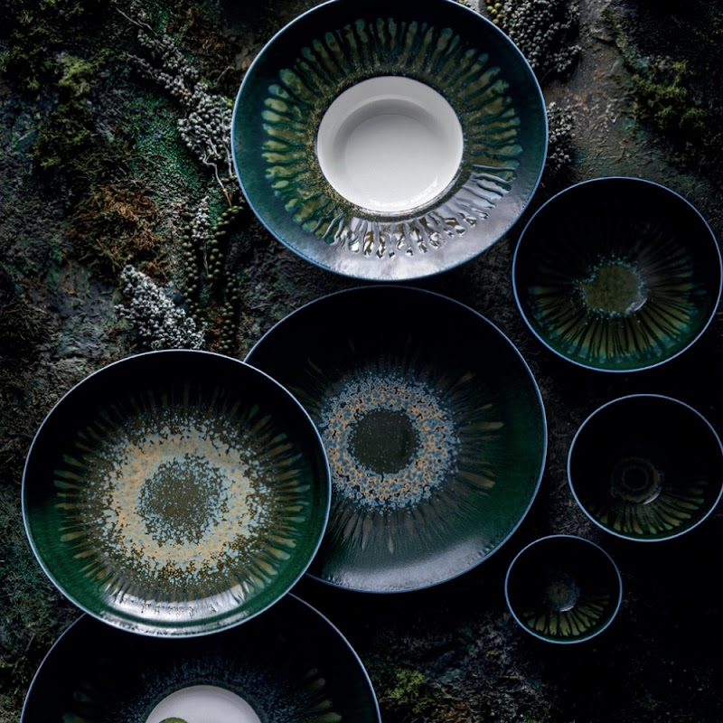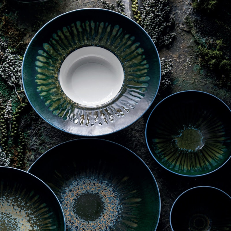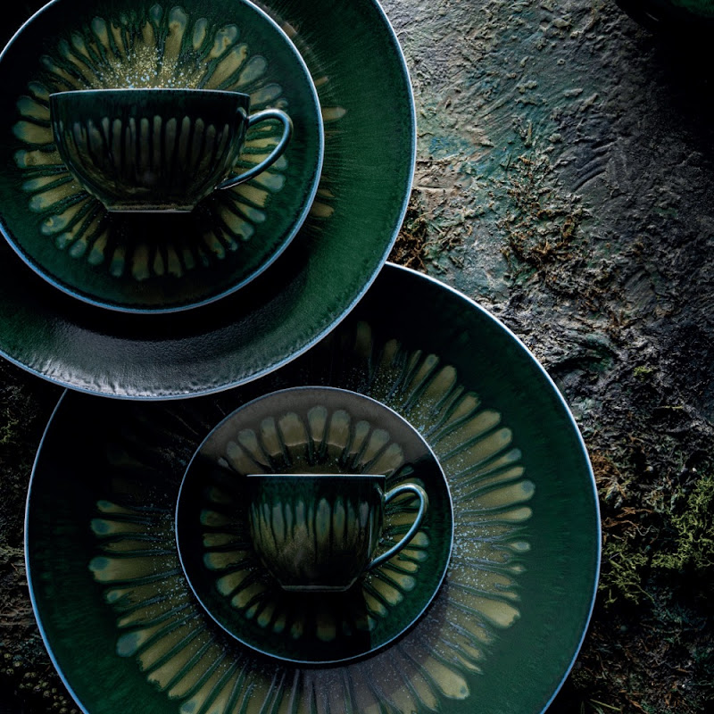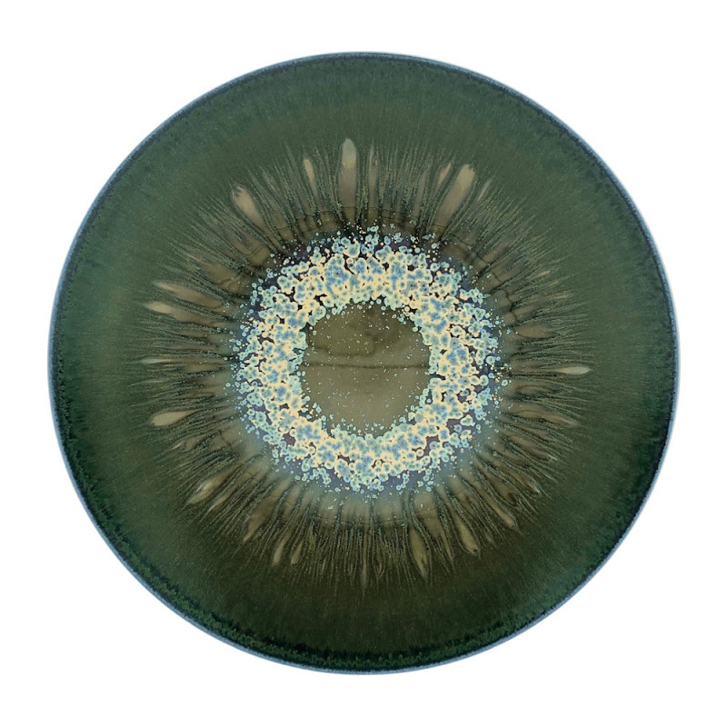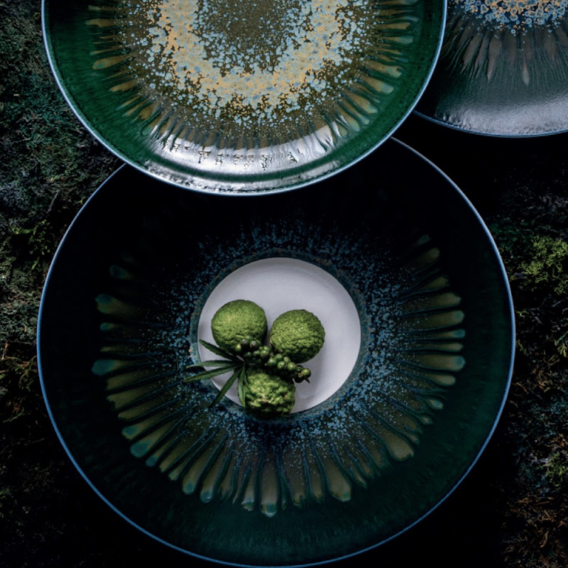 Jaune de Chrome is vermaard om het exclusieve glazuur vakmanschap. Metaaldeeltjes worden, vermengd met glazuur ,nauwkeurig op het porselein aangebracht, waarna het brandingsproces in de oven de ruwe materialen transformeert. Hierdoor is ieder stuk uniek en nooit helemaal hetzelfde, maar ook niet echt anders.