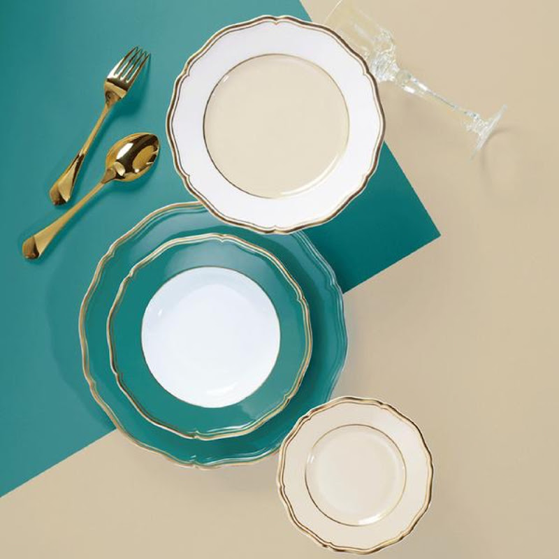 Limoges porselein met vergulde Filet. Verkrijgbaar in wit en 4 verschillende kleuren