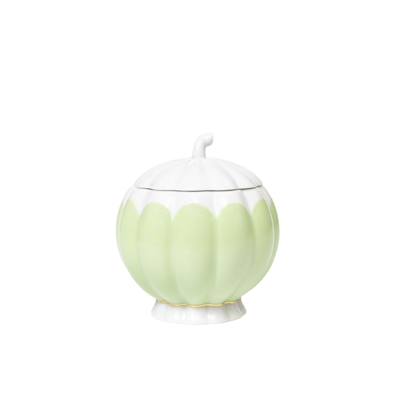Het exotische van de fruitvormen met de speelse knop en de prettig in de hand liggende handgrepen, waarvan de zacht golvende vorm de geribbelde wanden van de potten elegant weerspiegelt, kenmerken het charisma van dit servies.