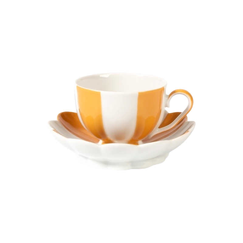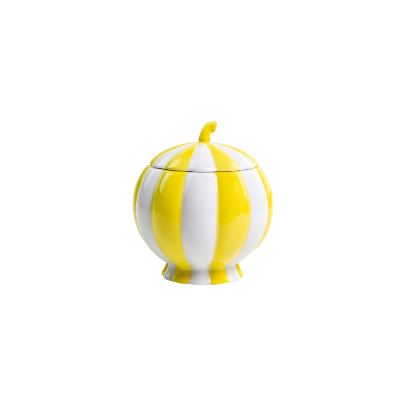 Het exotische van de fruitvormen met de speelse knop en de prettig in de hand liggende handgrepen, waarvan de zacht golvende vorm de geribbelde wanden van de potten elegant weerspiegelt, kenmerken het charisma van dit servies.