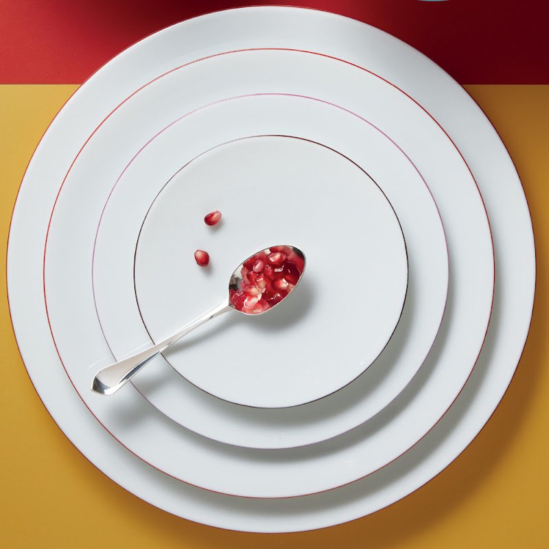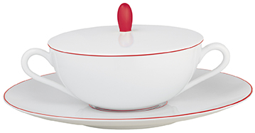 De individuele serviesdelen zijn afgebeeld in de kleur Vermiljoen rood