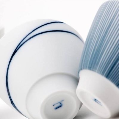 Bisquit porselein, gepolijst en voorzien van een kobaltblauwe bies