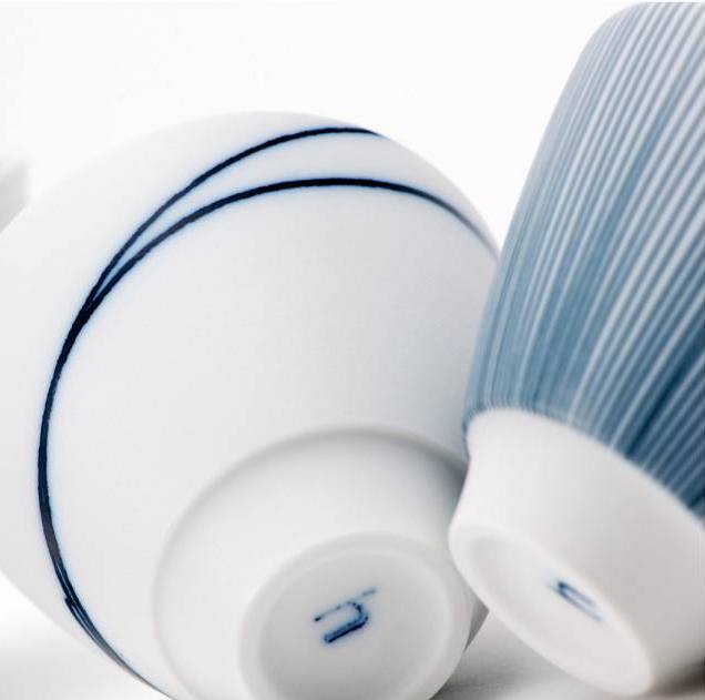 Bisquit porselein, gepolijst en voorzien van een kobaltblauwe bies