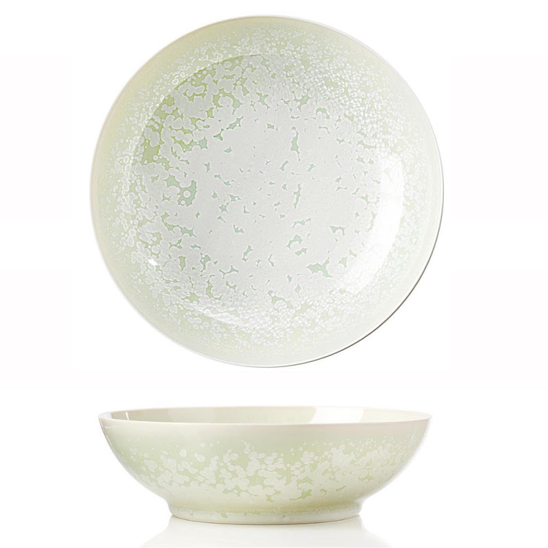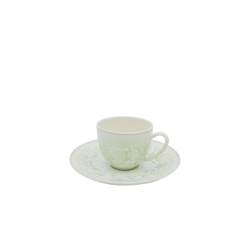 Jaune de Chrome is vermaard om het exclusieve glazuur vakmanschap. Metaaldeeltjes worden, vermengd met glazuur, nauwkeurig op het porselein aangebracht, waarna het brandingsproces in de oven de ruwe materialen transformeert. Hierdoor is ieder stuk uniek en nooit helemaal hetzelfde, maar ook niet echt anders.