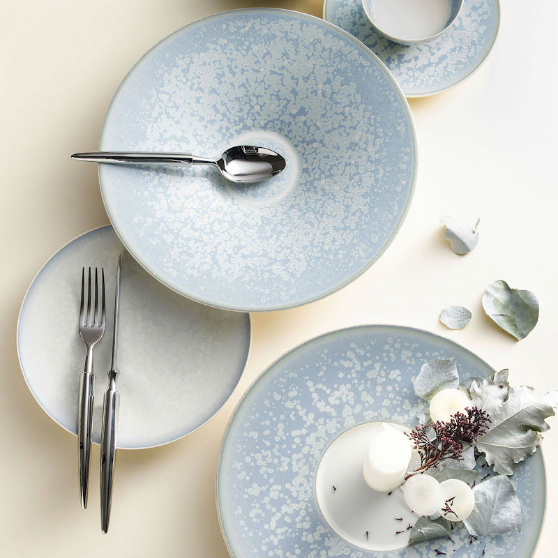 Zonder goud of platinum is dit servies vaatwasmachinebestendig en geschikt voor de magnetron