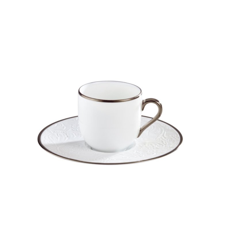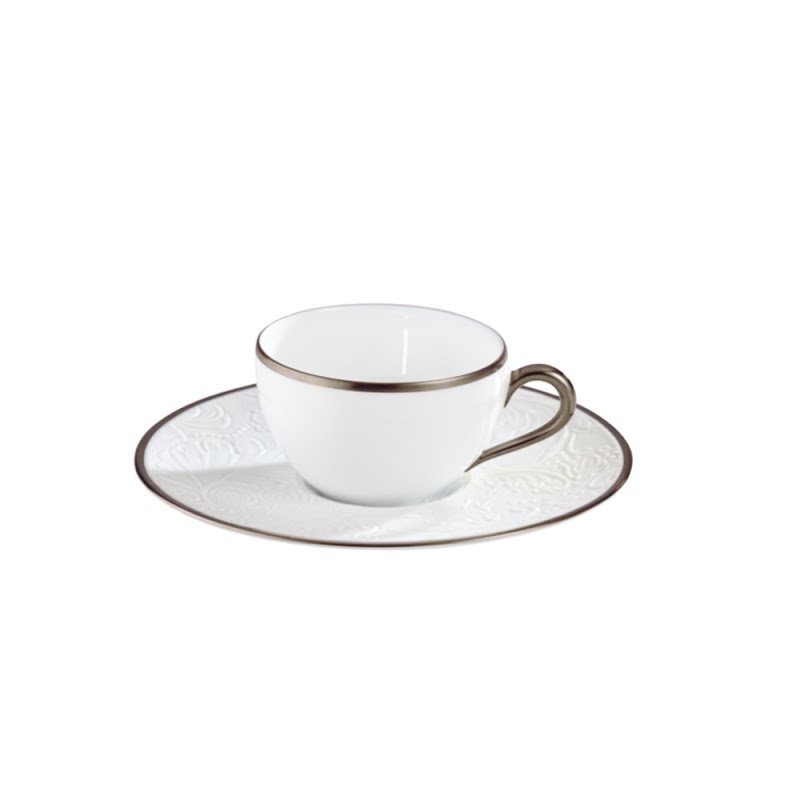 | Thee/Cappuchinokop en schotel groot Platina rand