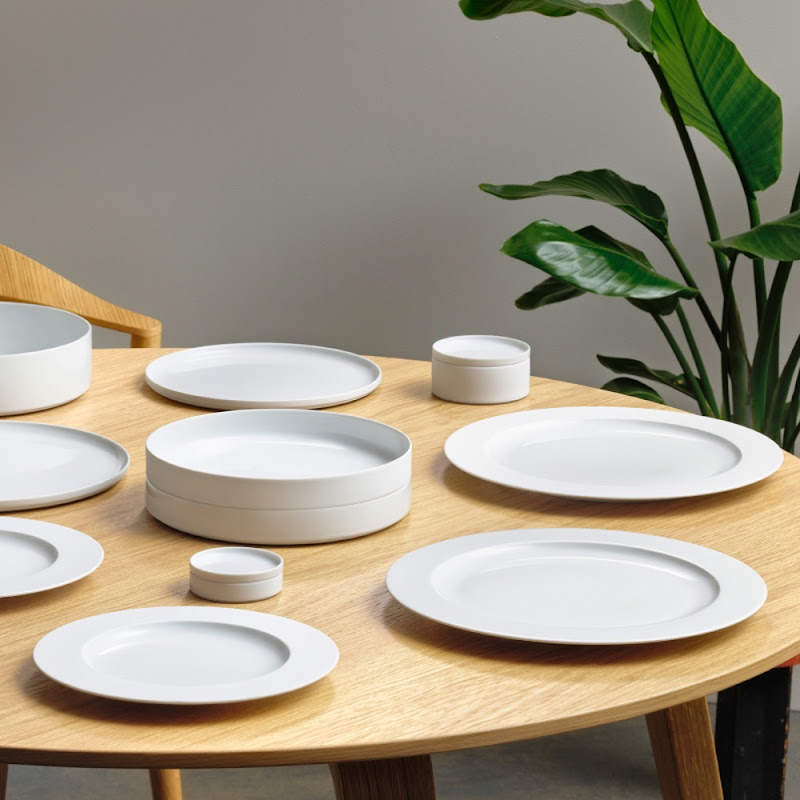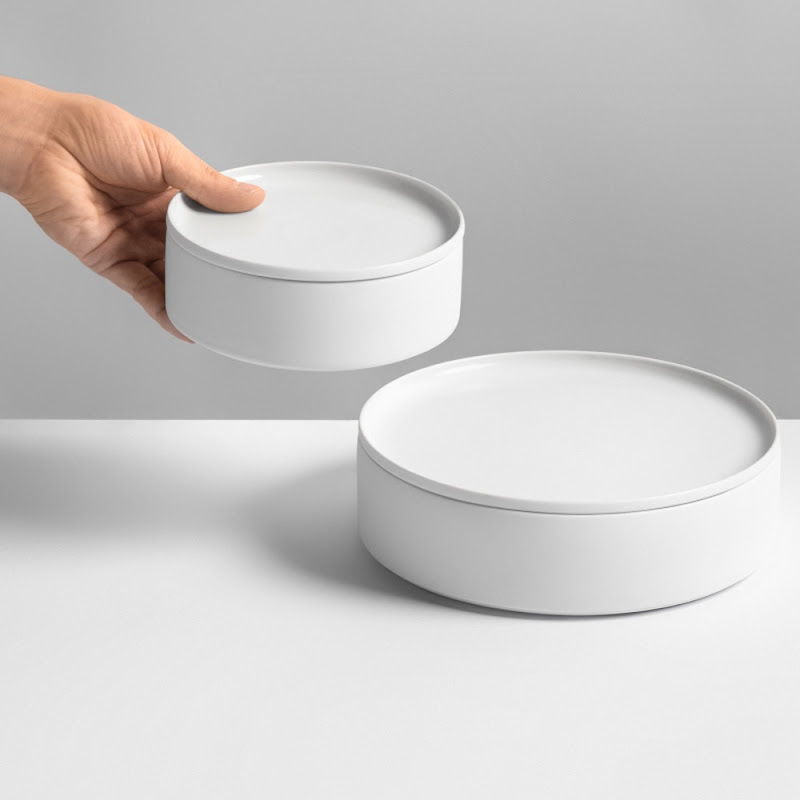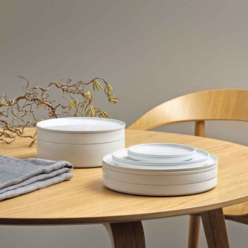 DATUM is een modulair servies dat strak design combineert met functionaliteit en eigentijdse flexibiliteit. De borden, kopjes, bekers en schalen zijn qua maat op elkaar afgestemd waardoor de diverse delen uitwisselbaar en stapelbaar zijn