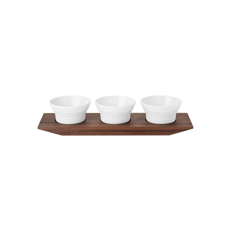 | Set van 3 bowls op houten blad