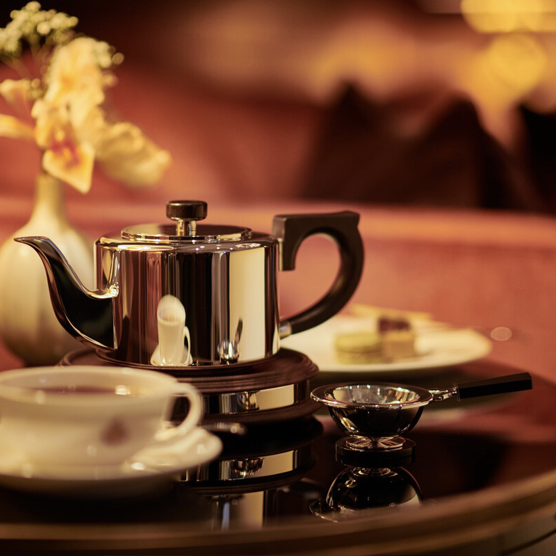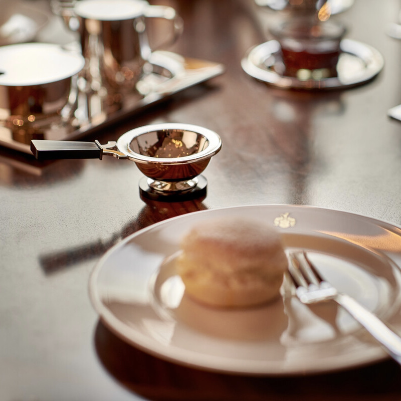 | Theezeef met Corian greep en lekbakje Verzilverd