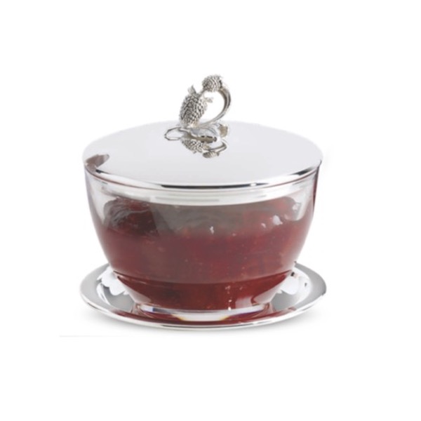 Verzilverd deksel, glazen potje