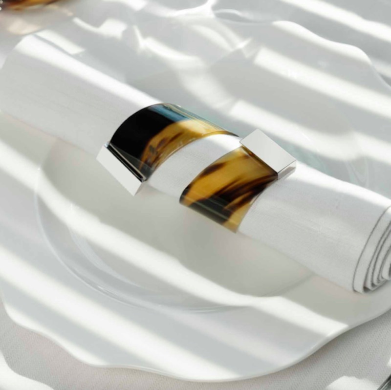 Set van 2 servetringen in hoorn en roestvrijstaal